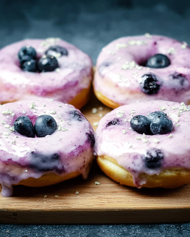 Blueberry cake donuts are a delightful treat that combines the sweetness of blueberries with a soft, fluffy texture. They are baked, making them a healthier option compared to traditional donuts.