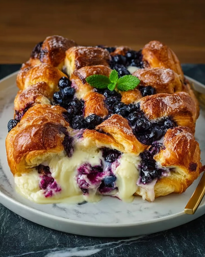 Blueberry Cream Cheese Croissant Casserole Recipe delights!
