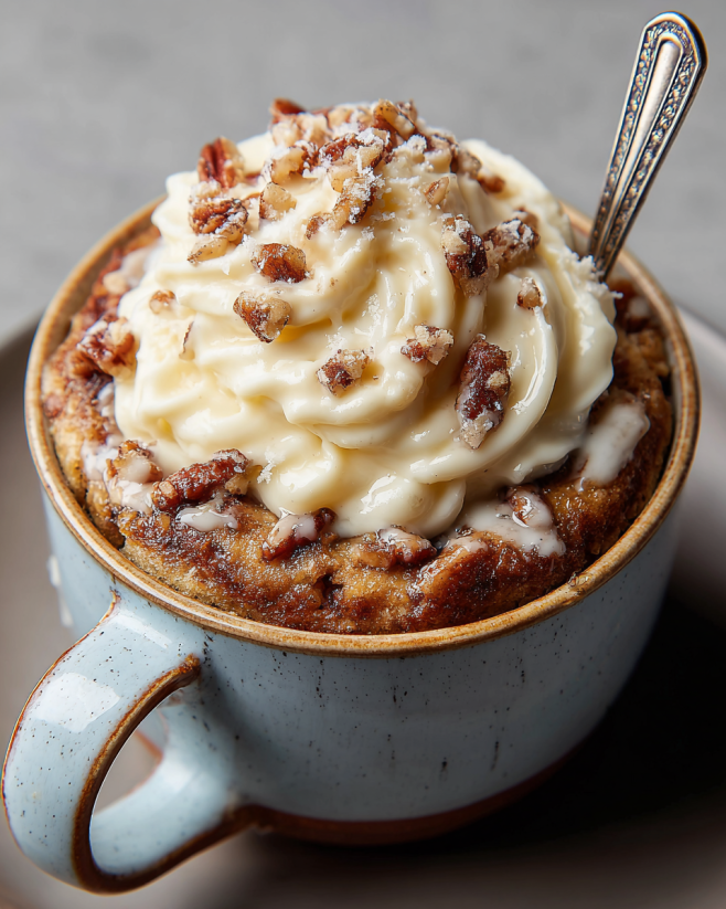 A quick and easy mug cake that combines the flavors of cinnamon rolls with the convenience of microwave cooking.