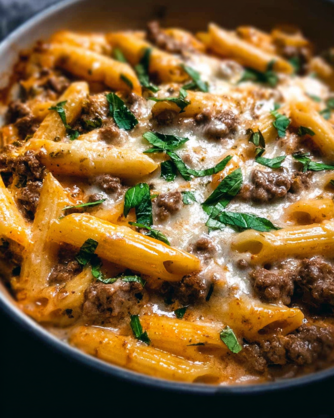 Creamy Beef Pasta Bake Recipe. This dish combines tender penne pasta with savory ground beef, all enveloped in a rich and creamy sauce. It’s a perfect blend of flavors that will warm your heart and satisfy your taste buds.