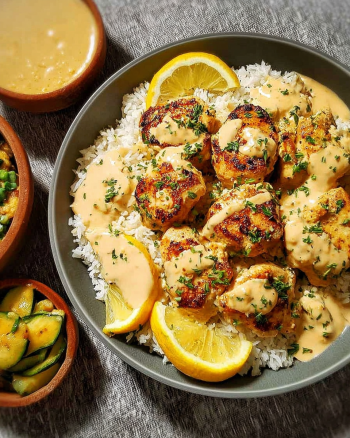 A delightful dish featuring tender chicken breasts in a rich, creamy sauce infused with zesty lemon and aromatic garlic, perfect for busy weeknights or special occasions.