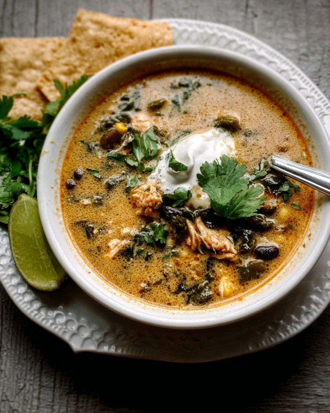 A comforting soup made with roasted poblano peppers, tender chicken, and a rich, creamy base, perfect for chilly evenings or impressing guests.