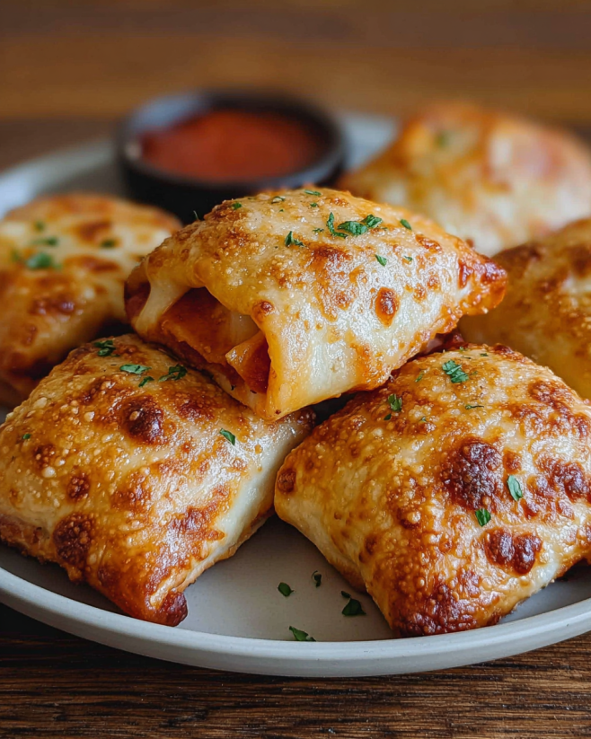 • Dip It Up: Serve your pizza rolls with a side of warm pizza sauce for dipping. The rich, tangy flavor of the sauce complements the cheesy filling perfectly. You can also try ranch dressing, garlic butter, or marinara sauce for a fun twist!