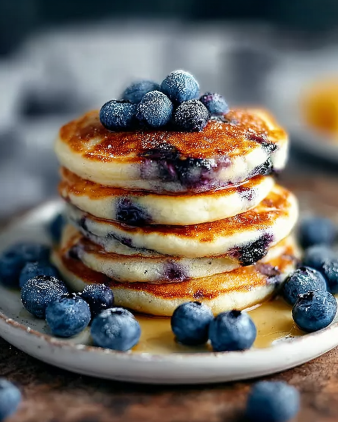 A delightful and nutritious pancake recipe made with Greek yogurt and fresh blueberries, perfect for a healthy breakfast.
