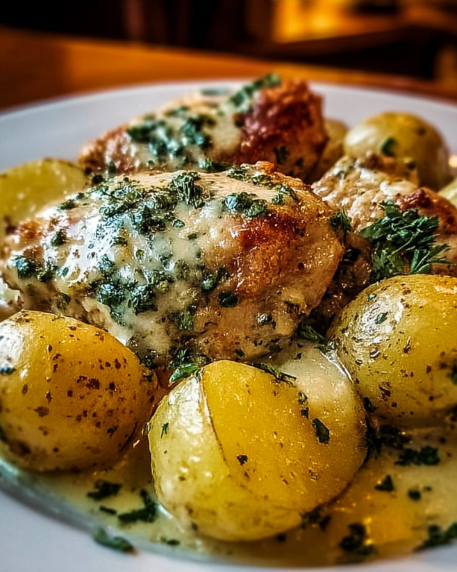 - Oven-Baked: Preheat your oven to 375°F (190°C). Place the chicken and potatoes in a baking dish, pour the garlic Parmesan sauce over them, and cover with foil. Bake for about 45 minutes, then remove the foil and bake for an additional 15 minutes to brown the top.