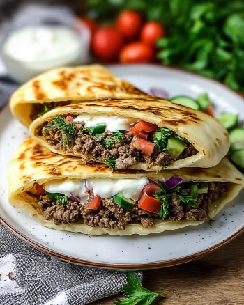 A delicious and easy meal that brings the flavors of the Mediterranean right to your kitchen, packed with seasoned ground beef, fresh vegetables, and creamy tzatziki sauce.