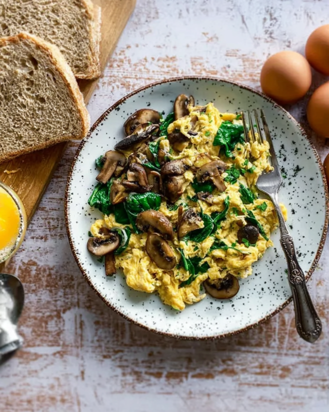 Mushroom and Spinach Scrambled Eggs are a must-try!