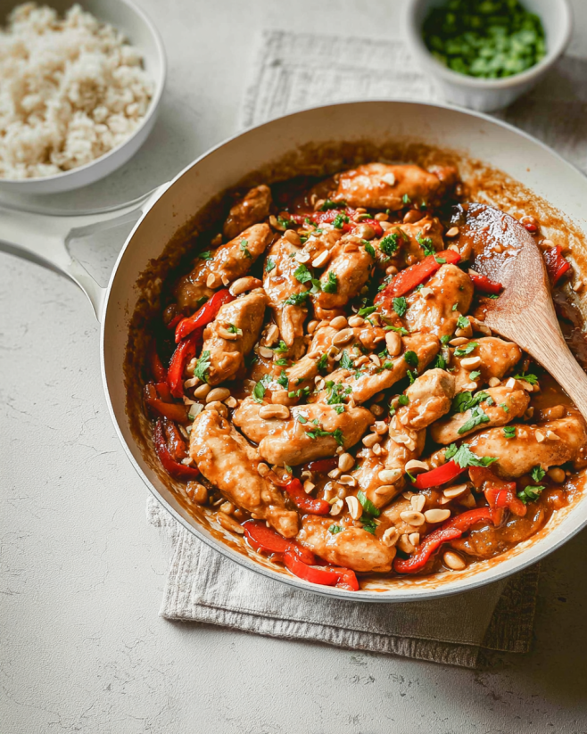 Moreover, the Peanut Chicken Skillet Recipe is versatile. You can easily adjust the spice level to suit your taste. Whether you prefer it mild or with a fiery kick, this recipe can accommodate your preferences. It’s a fantastic way to introduce new flavors to your dinner table while keeping it simple and satisfying.