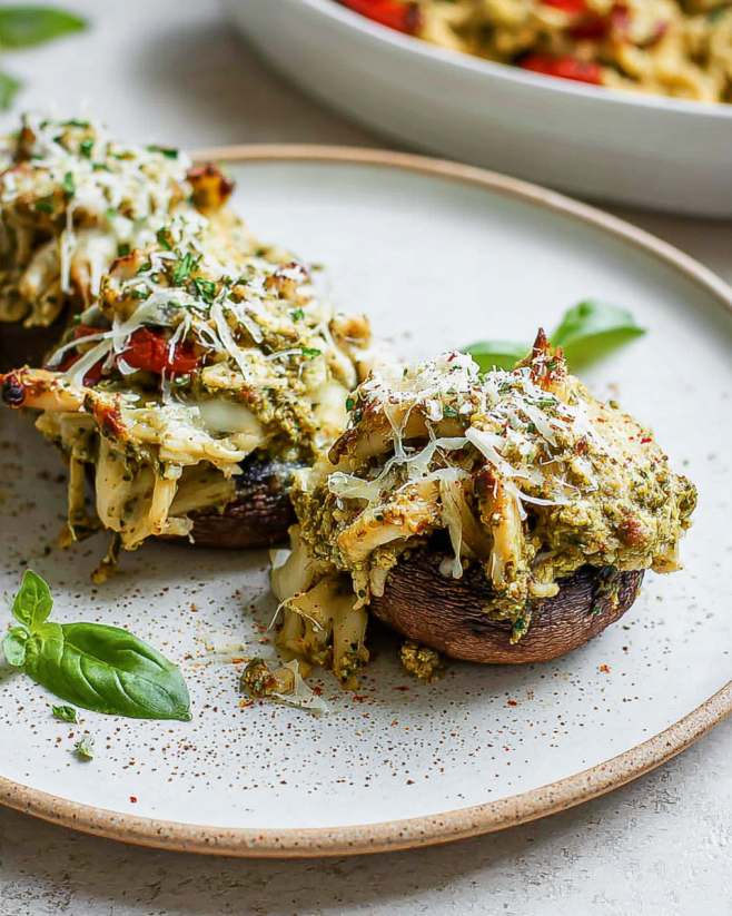 Pesto Chicken Stuffed Mushrooms Recipe is versatile, so feel free to experiment with your favorite proteins!
