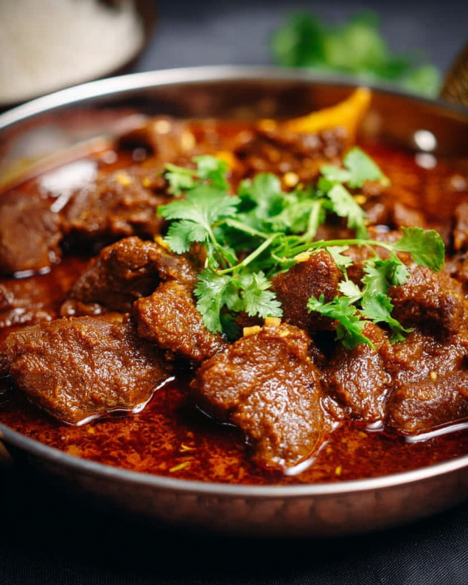 A flavorful and spicy dish originating from Goa, featuring marinated beef cooked in a rich, tangy sauce.